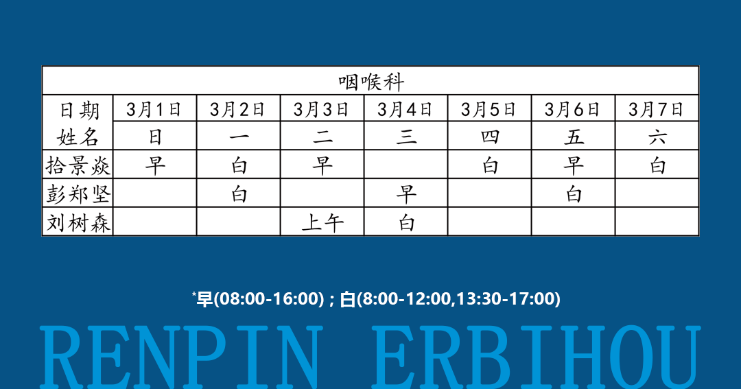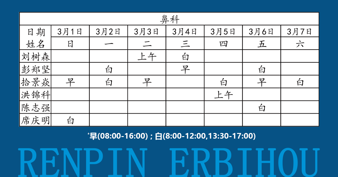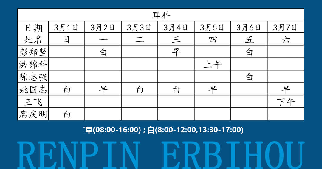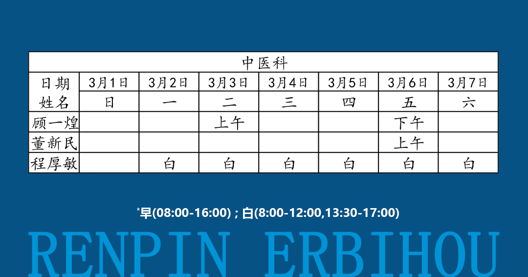 如有临时调整,以当日出诊信息为准!