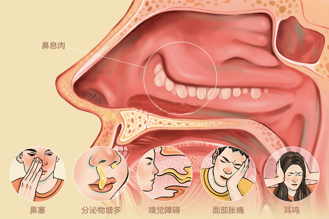 鼻息肉若持续增大或数量增多,会压迫周围组织引发一系列不适: